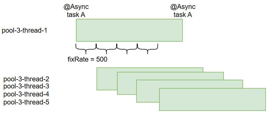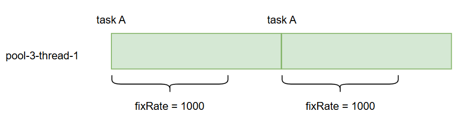 fixedRate时,任务执行时间超过固定的间隔(Rate),则后继任务的执行会在当前执行结束后立即执行